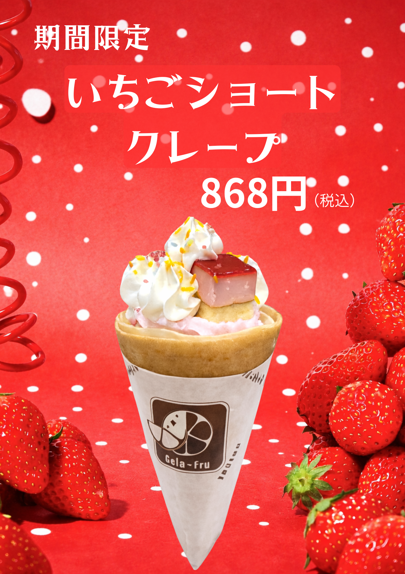 カットいちごとストロベリーソース入りで、最後まで いちごの美味しさを味わえる、4月限定のスイーツクレープです。